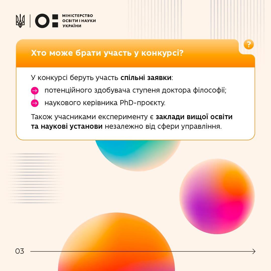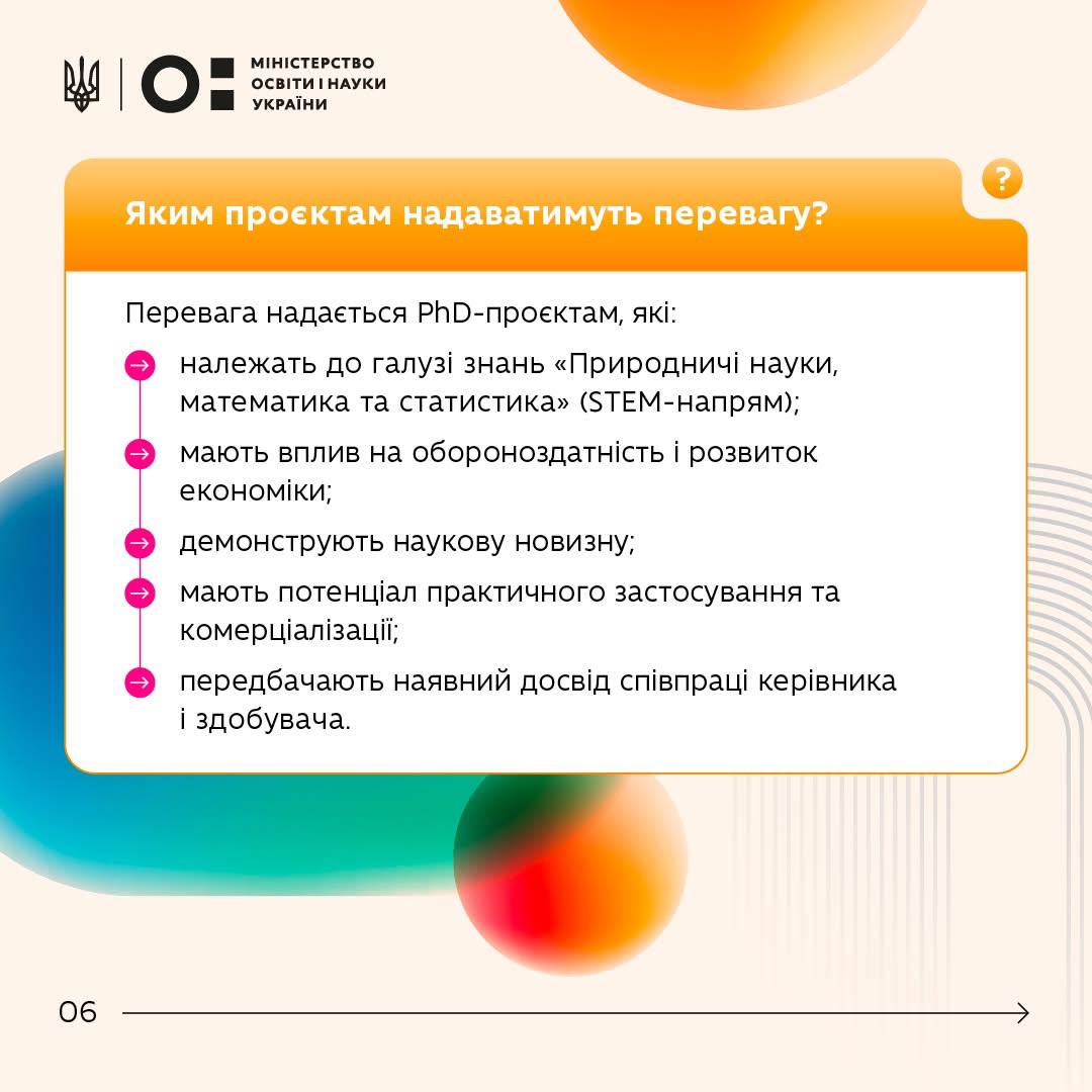 Умови конкурсного добору, перелік вимог до PhD-дослідницьких проєктів, формат подання та документи доступні за посиланнями: https://nauka.gov.ua/information/pa2026/