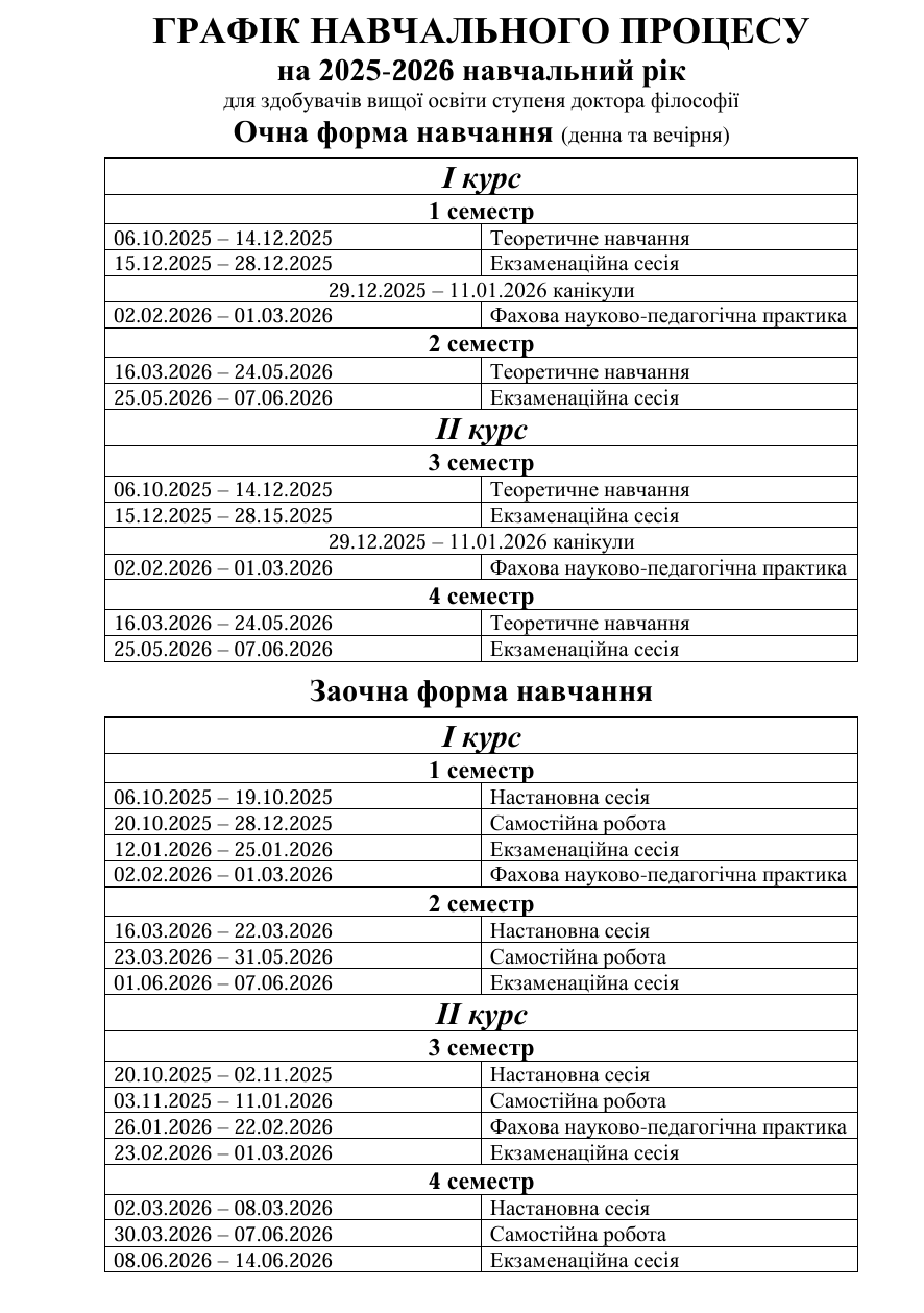 ГРАФІК НАВЧАЛЬНОГО ПРОЦЕСУ